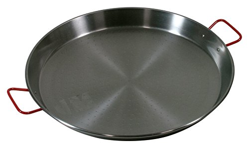-. Feature : Authentic paella pan. Made in Spain. / Carbon steel is durable and conducts heat well. requires a bit of maintenance after washing. / Safe for stovetop, oven, or grill. / Ideal for serving 6 to 10 people. / The pan comes with an informative pamphlet that contains two recipes, tips for perfect paella, and care instructions.