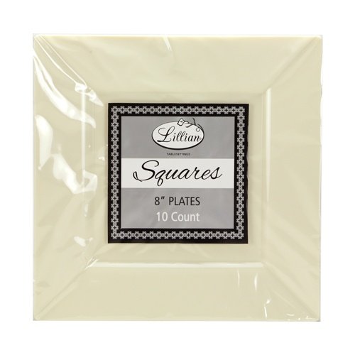 Studio : Lillian Tablesettings Publisher : Lillian Tablesettings Binding : Kitchen Product Description Lillian table settings cream 8" square plastic dinner plates, 10 count. This item is part of a set that (sold separately) includes a 10.25", 9.5", 8" and 6.5" Plates and 12 oz. And 5 oz. Bowls. This item comes in 3 colors: clear, pearl and cream. Designed for all occasions, banquets, parties, upscale catering and home. Disposable product. 0