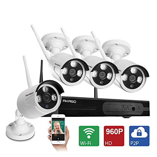 -. Title : AKASO WS13M-401 4CH 960P HD WIFI Security Camera System Wireless Video Surveillance Network NVR Kits CCTV IP Camera Equipment with 1280×960P Cameras System Night Vision Without HDD