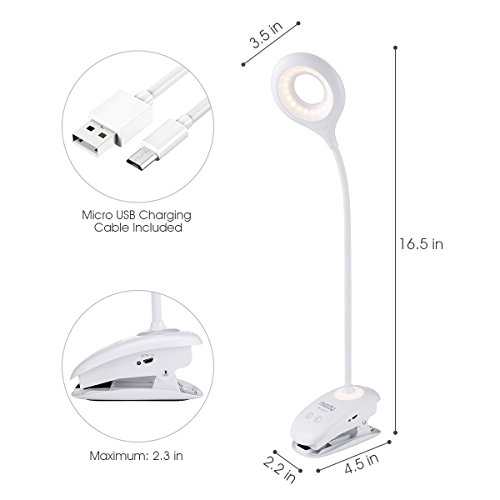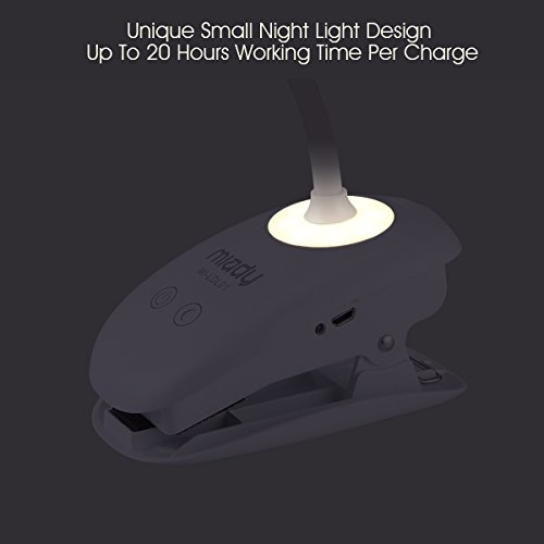 Miady 20 LED Clip On Reading Light Eye Protection Book Light, Dimmable, 360° Flexible, Touch Control, USB Rechargeable and Built-in 2200mAh Battery - Warm White