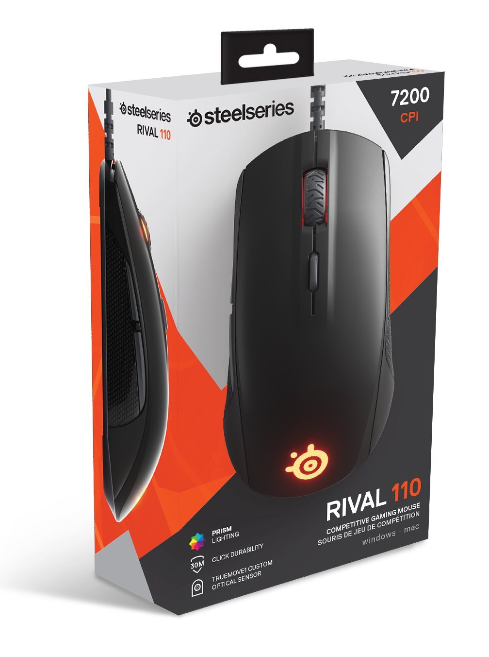 SteelSeries Rival 110 is a gaming mouse equipped with the original optical sensor "TrueMove 1" which was jointly developed with PixArt and enabled true-to-1 tracking.