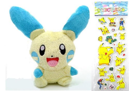 Pokemon Plush Toy - Minun Plush Doll Around 14cm 5" + Pokemon Sticker