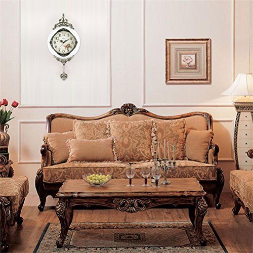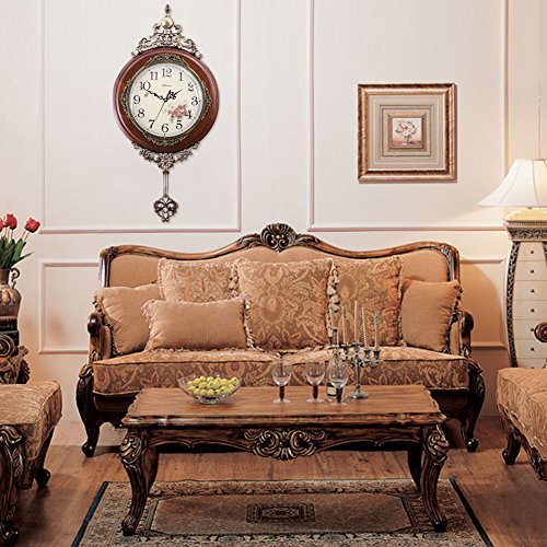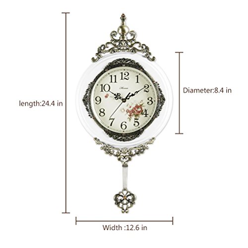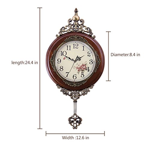 -. Title : HENSE 13-inch Antique Retro Decorative Wood Clocks Ultra Mute Silent Quartz Movement Wooden Wall Clock with Swinging Pendulum HP06