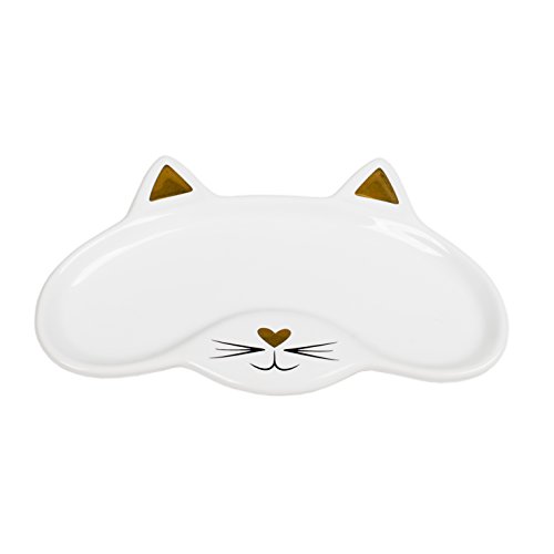 White Cat Eye Head 7 x 4.5 Inch Porcelain Decorative Boxed Eyeglass Holder Tray
