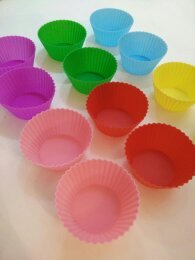 Top Chefs Silicone Baking Cups / Cupcake Liners - Set of 12 Reusable and Nonstick Cupcake Molds - 6 Vibrant Colored Molds in a Storage Container