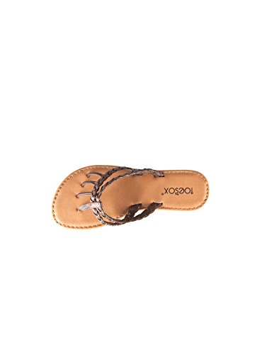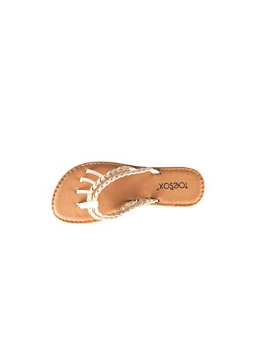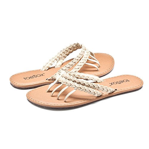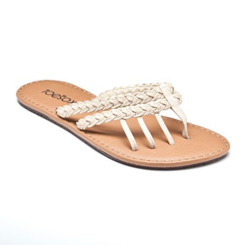 Studio : Toesox Publisher : Toesox Binding : Apparel Product Description Toesox Women's Mazzy Five Toe Sandals - Bone These cute Toesox Mazzys will hug your feet in pretty braids and send you off in style, wherever your journey takes you. Four toe posts gently spread toes and align bones for increased foot health and balance, while also anchoring foot inside the sandal for additional support and stability. Features: Lightly padded foot bed for comfort Feminine braided vegan strap Comfortable vegan leather toe posts Durable rubber outsole 0