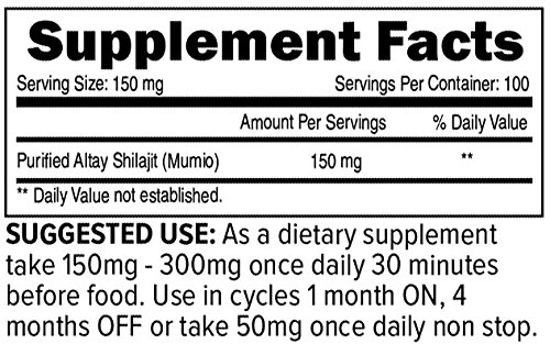 Studio : Pure Himalayan Shilajit Publisher : Pure Himalayan Shilajit Binding : Health and Beauty Product Description SHILAJIT is the fulvic acid plus trace mineral food supplement. We need minerals as essential building blocks for our cells to function and Shilajit is ready to fulfill that needs. The lack of those elements may lead to many chronical diseases and makes our cells weak. The critical advantage from other mineral supplements that Shilajit is 100% naturally harvested substance. It is not a concentrate, mix or synthesized product and their deposits are limited. During many million years of Shilajit formation deep in Himalayan rocks, the Fulvic Acid evolved complex molecular bonds with minerals and metals. Fulvic Acid is one of the rare elements that can pass our cells membrane; it also carries those minerals and metals that make detox and elements exchange possible. You cannot get the same efficiency using mixed or concentrated extracts. ALTAY SHILAJIT RESIN like a soft cedar resin. It could be used straight as well as mixed with your drink. Altay mountain range does not go higher than 14,000 feet that make it a lower grade than a Himalayan shilajit wich collected above 16,000 feet. However, the Altay resin is much more affordable, and indeed it is a very potent Shilajit. You just need to take twice amount of Altay resin compared with Himalayan shilajit, and it still makes it more affordable. 0