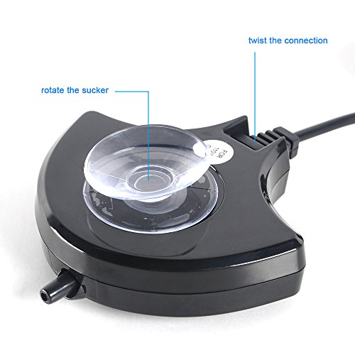 4, PROFESSIONAL DESIGN WITH SUCTION CUP : Protect the air pump falling into tank; Please clean the sucker surface and aquarium tank wall to keep it stick steady