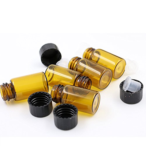 30 Packs DIY Amber Glass Empty Essential Oil Bottles Travel Perfume Cosmetic Sample Vials Container Bottle With with Orifice Reducer and Black Plastic Cap (2ml)