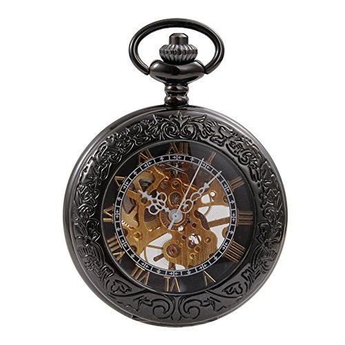 -. Title : Black Transparent Skeleton Retro Mens Mechanical Gift Pocket Watch