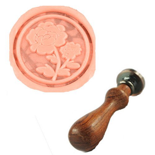 MDLG Vintage Peony Flower Custom Picture Logo Wedding Invitation Wax Seal Sealing Stamp Rosewood Handle Set