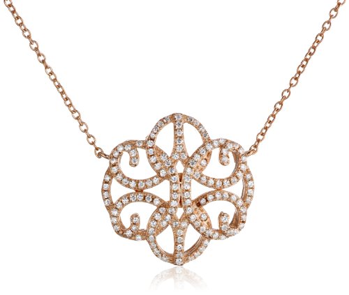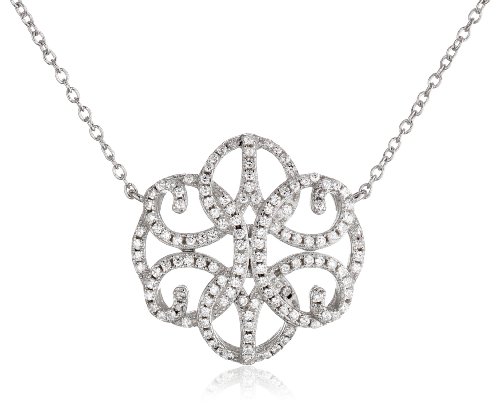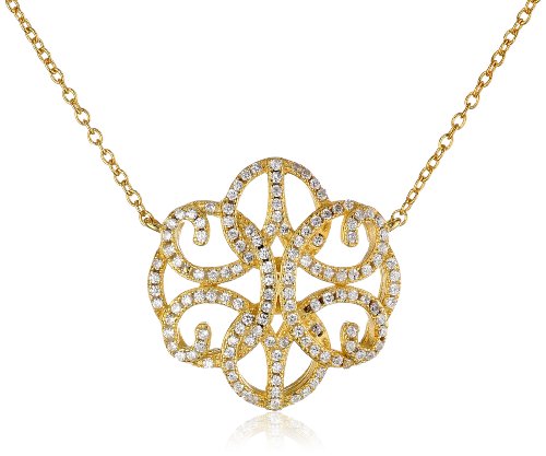 Sterling Silver with Yellow Gold Flash Cubic Zirconia Floral Filigree Necklace, 16+2" Extender