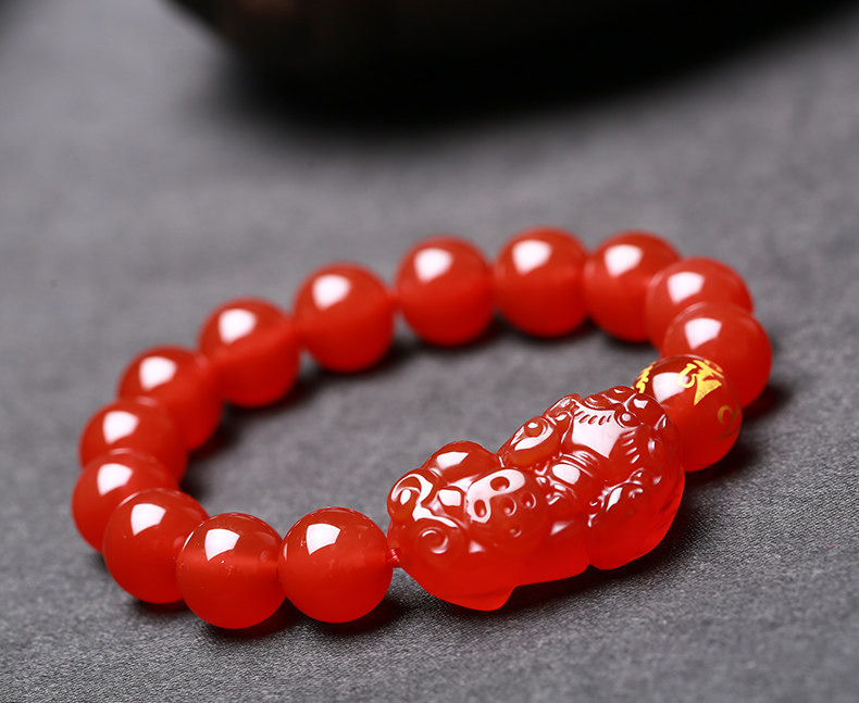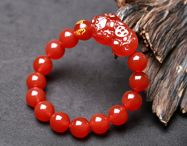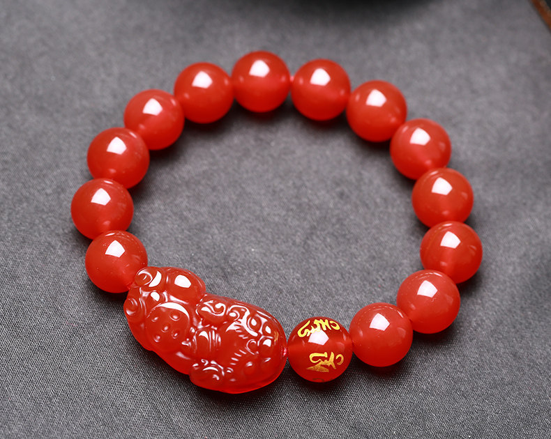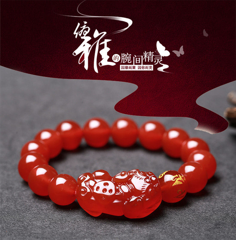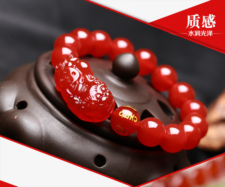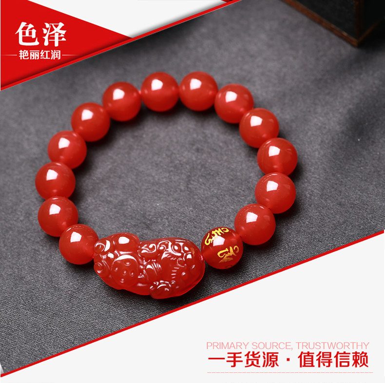 开光天然红玛瑙貔貅手链男女款貔貅手串礼物饰品水晶礼品