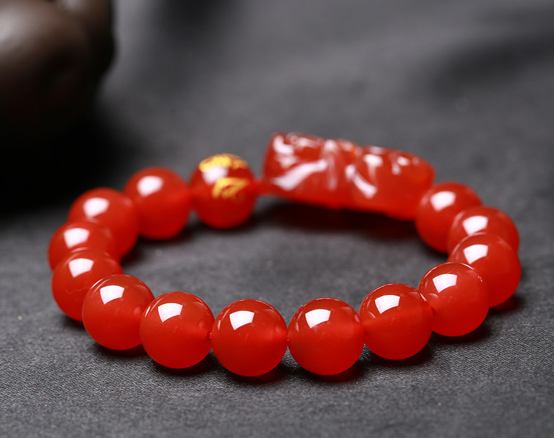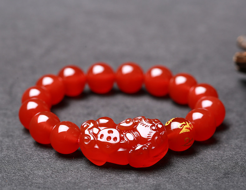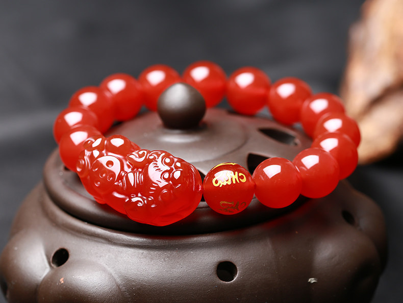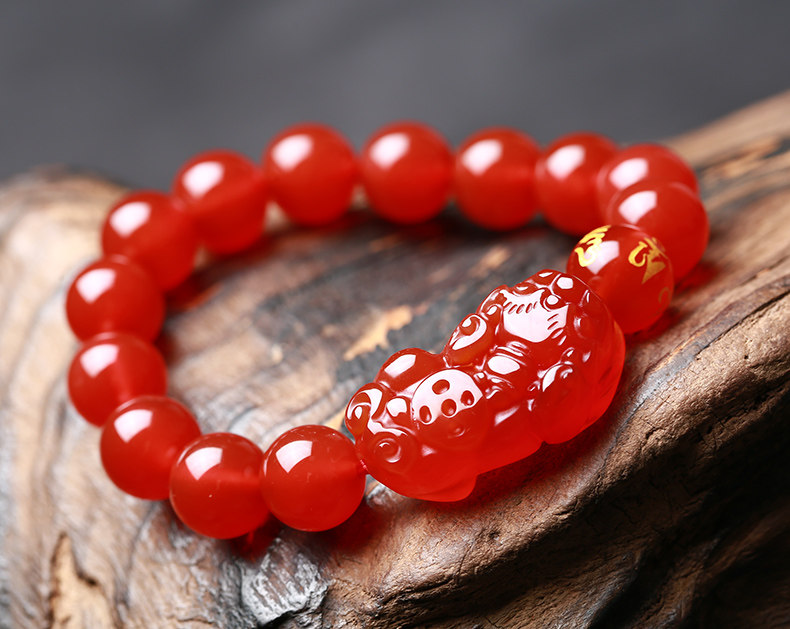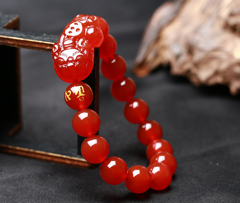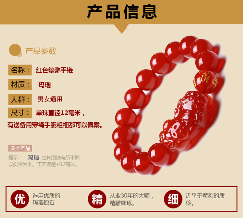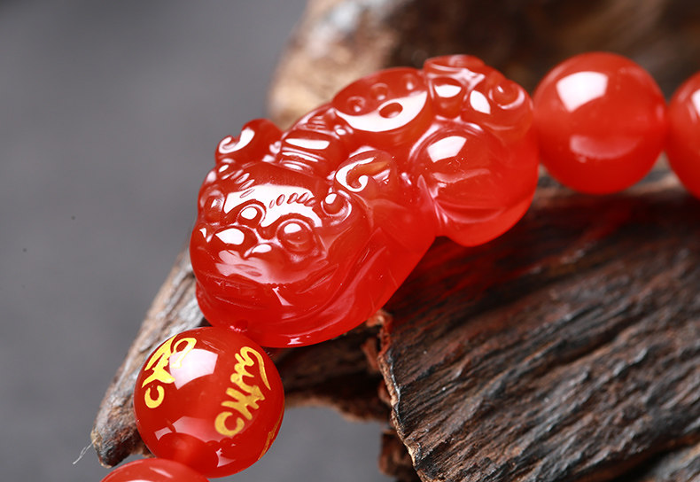 开光天然红玛瑙貔貅手链男女款貔貅手串礼物饰品水晶礼品
