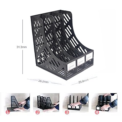 Plastic 4 Compartments File Rack Paper Holder Desktop, File Holders Organizer Box (Black)
