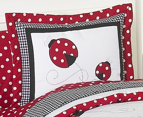 Red and White Ladybug Polka Dot Childrens Bedding 4 Piece Girls Twin Set