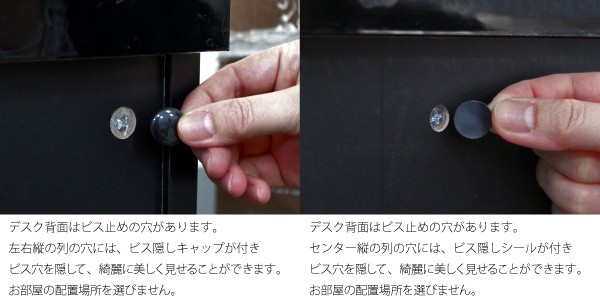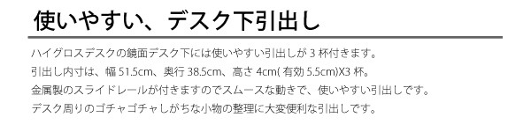 ■鏡面部分は、デスク天板、天板側面、引き出し前面部分、チェスト天板、チェスト引出し前面です。