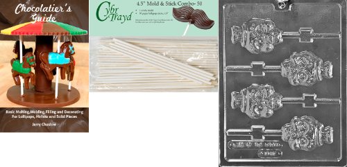 Cybrtrayd 'Skull Lolly' Halloween Chocolate Candy Mold with 50 4.5-Inch Lollipop Sticks and Chocolatier's Guide