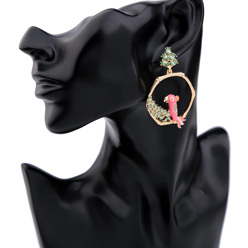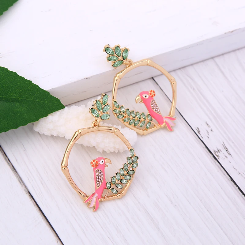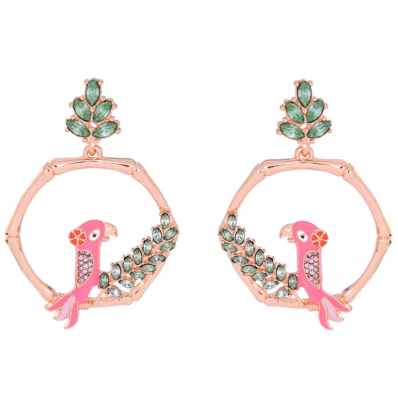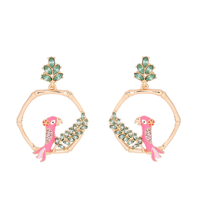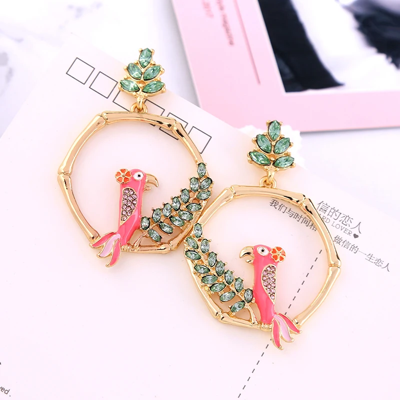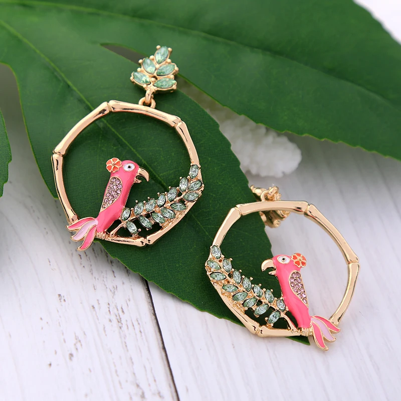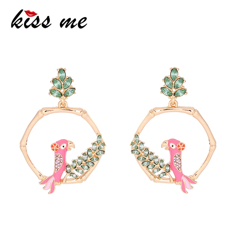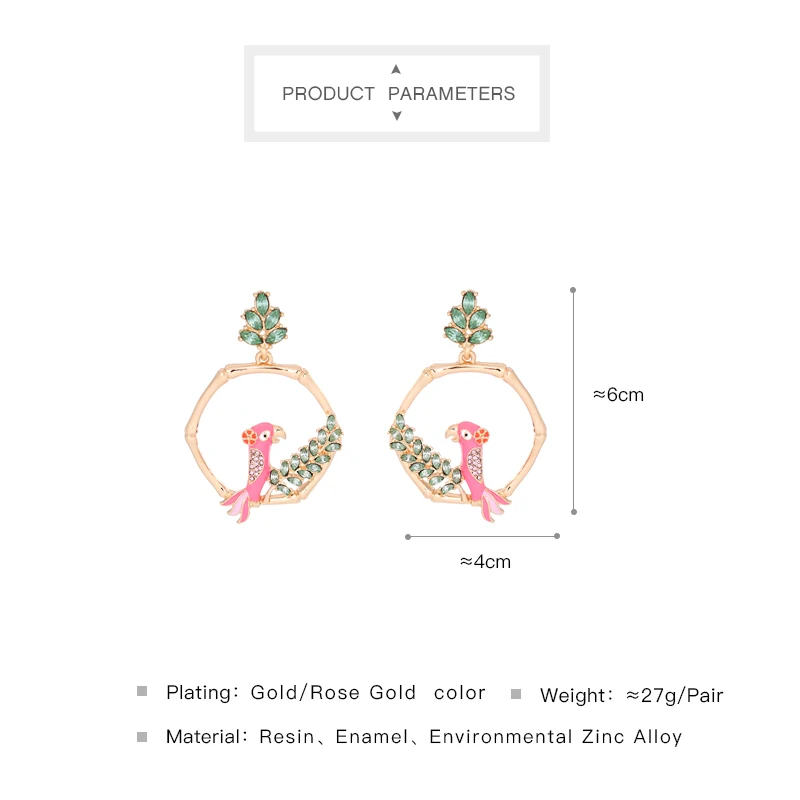 Production name ::KISS ME Cute Crystal Enamel Parrot Bird Big Earrings