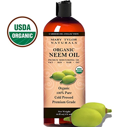 USDA Certified Organic Organic Neem Oil 16 oz , Premium Grade, Cold Pressed, Unrefined, 100% Pure, Great for Hair, Skin and DIY Projects