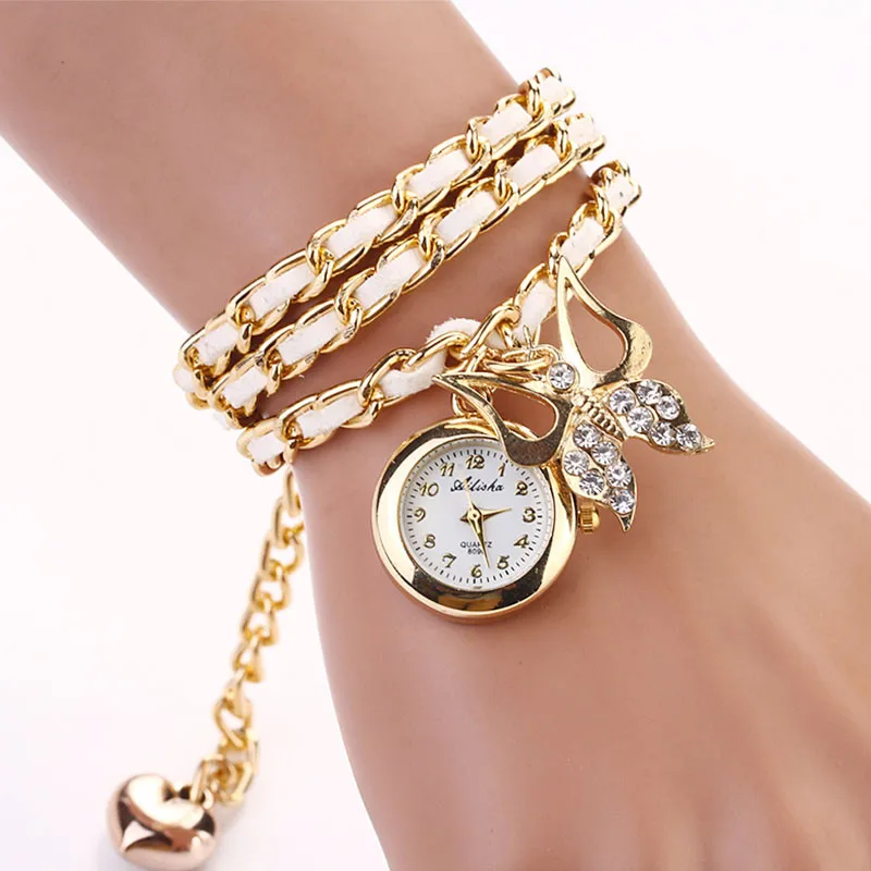 럭셔리 여성의 팔찌 시계 라인 석 크리스탈 나비 석영 팔찌 손목 시계 최고의 joyeria relogios feminino #48