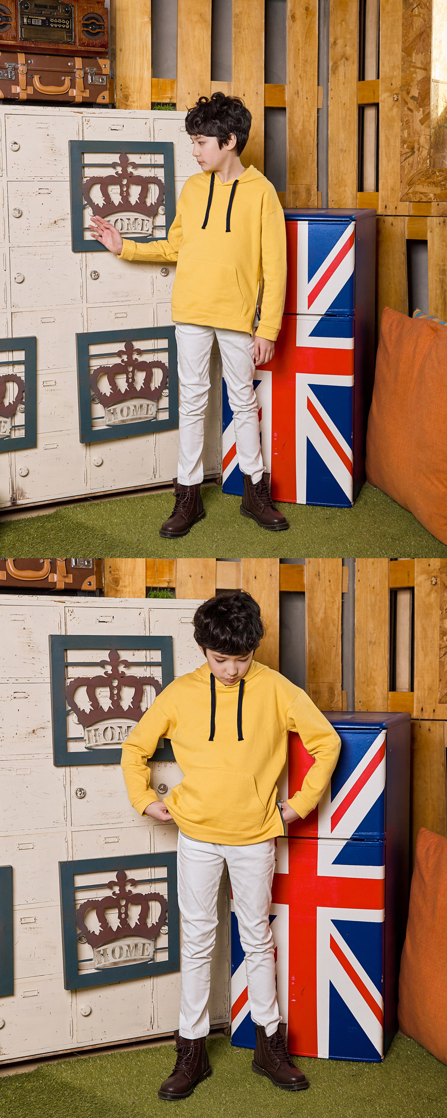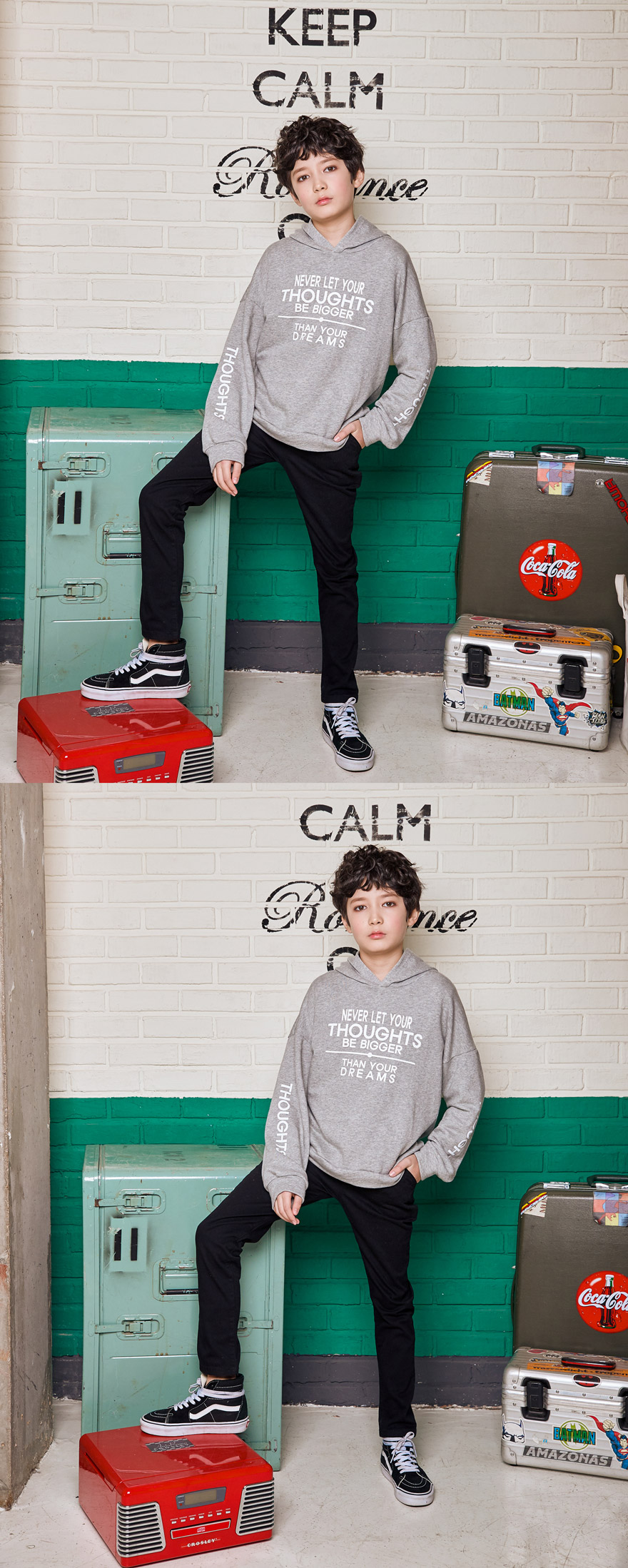 9, 11, 13, 15, 17호로 준비되어 있으며 하단에 측정된 사이즈 표를 참고해 주세요. 세종이는 151cm에 34kg으로 다소 마른 체격이며, 여유 있게 블랙, 아이보리 15호를 착용하였습니다. 깔끔한 핏으로 잘 맞네요 :)
