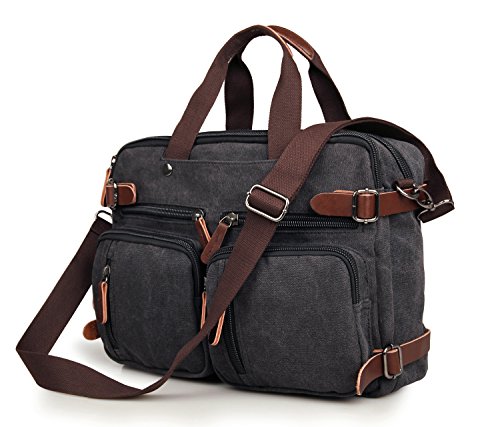 -. Feature : TOP QUALITY MATERIAL & CONSTRUCTION: Top-quality durable canvas with leather straps giving it the much sought after vintage-rustic look. / PADDED INTERIOR: Durable and elegant cotton lining on the inside, protecting your mobile phone, i-pad, tablet, laptop, and other valuables. / PERFECT LAPTOP BAG: This Backpack Messenger Bag can be used as a Laptop bag; it has a padded compartment for your laptop- it could carry 13.3, 14, 15 inch computer, or even larger laptops as well, e.g. MacBook laptop 15.4" 15.6". But do check your laptop's actual measurement against those of this bag as stated on this listing. / SUPER ORGANIZER: Besides the well-padded laptop compartment, the generous number of front and secretive pockets turns this leather canvas bag into a real organizer bag to accommodate all of your digital gadgets. / VERSATILE: This is not just a laptop bag. It can also be converted into a Backpack! Besides easily transforming from a messenger bag to a backpack (and vice versa), the universal appeal of its vintage style, as its expandable capacity, makes it a good fit for many uses indeed; it is a super versatile Hybrid Backpack Laptop Messenger Bag Day Bag all wrapped in one! Click the "Add to Cart" button now and experience it for yourself!
