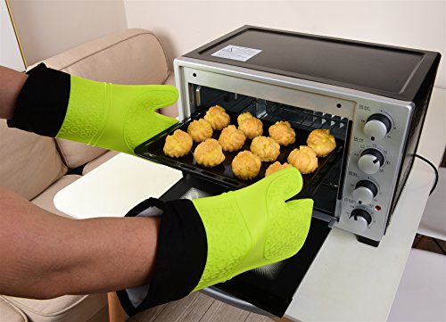- PERFECT FIT - more roomy than a glove, but without being Big and Bulky and Cumbersome. You can easily put these on (and off) to securely hold your lids and cookie sheets, or even pick up roasts etc. The outer shell is waterproof so it's fine, and the raised silicon pattern aids in the non-slip.
