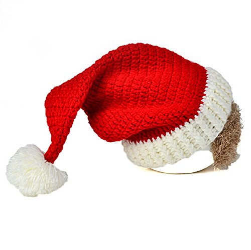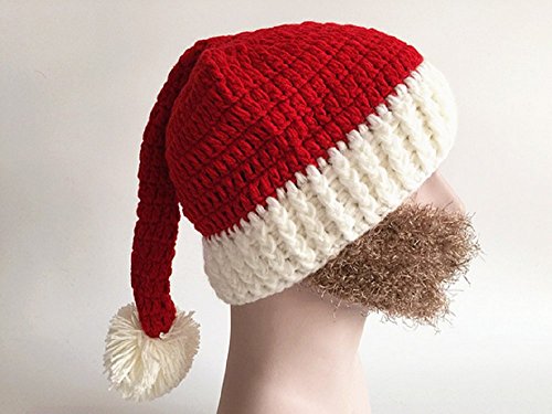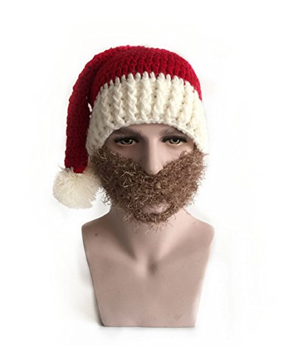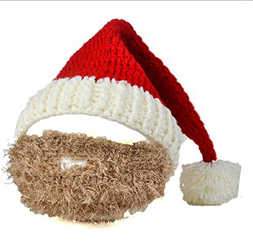 Santa Hat&Beard Set Unisex Fashion Windproof Warm Christmas Party Accessory Red Knitted Beanie Cap with Mustache by LRRH (Brown)