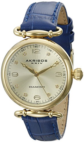 -. Title : Akribos XXIV Women's AK878BU Round Champagne Dial Three Hand Quartz Stainless Steel Strap Watch
