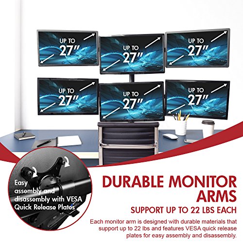 Viotek Articulating Hex 6-Monitor Stand with Adjustable Height – Monitor Arm with VESA Mount fits up to 6 screens