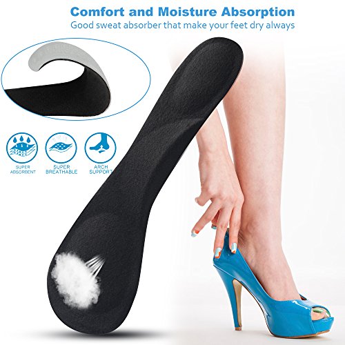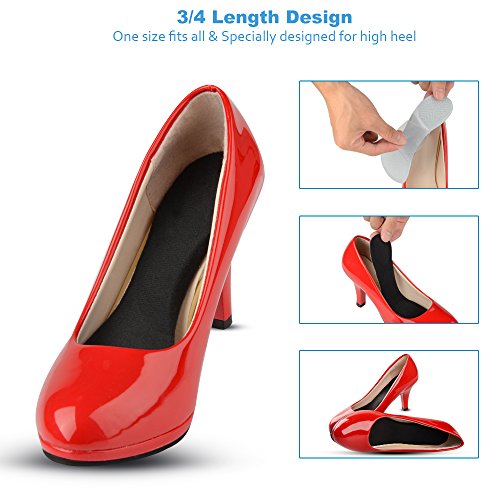 Soumit Massage Gel Insoles, 3/4 Length Velvety Heel Inserts Pads with Transverse Arch Support for Making Your High Heels More Comfortable and Pain Relief (Black)