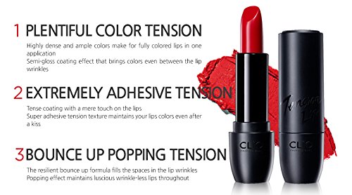 -. Feature : Clio Virgin Kiss Tension Lip / 3.5g / A highly pigmented, long-lasting lipstick that delivers rich color in one stroke. / It smooths and coats vertical lip lines for a flawless finish without dryness.