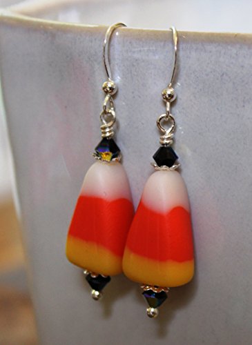 -. Title : Candy Corn Halloween Earrings, Sterling Silver