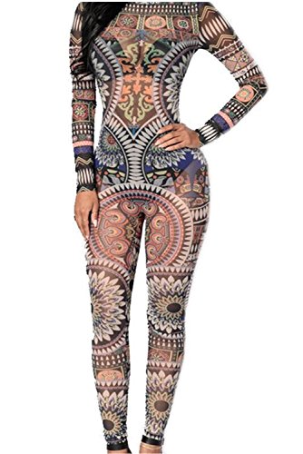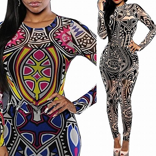 (VIVOSKY)/Women/Dresses/DIRECT FROM USA/Women Tribal Tattoo Printed Jumpsuit Dumpsuit Sexy Bodysuit Celebrity Playsuit
