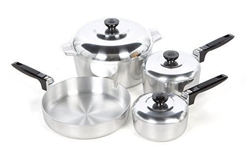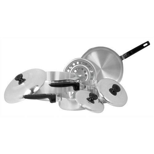 -. Brand : Magnalite -. Color : Metallic -. EAN : 0737123160082 -. Feature : Thick bases that won't warp, doomed lids lock in moisture / Set Includes: 10'' Skillet, 1 qt. saucepan with lid, 2 qt. saucepan with lid, 5 qt. dutch oven with lid and rack / Heat transfers from vessel walls and promoting convection style heating / Phenolic handles and lids are oven safe up to 350 degrees Fahrenheit / Hand wash to maintain quality; Stock Pot: 9.2" H x 15" W x 16" D; Overall Product Weight: 15.6lbs -. ProductGroup : Kitchen -. ProductTypeName : KITCHEN -. Size : 17 x 16 x 11 inches -. Title : Classic Cast Aluminum 8 Piece Kitchen Cookware Set -. UPC : 737123160082