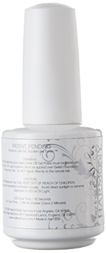 Studio : Gelish - Hand Nail Harmony Publisher : Gelish - Hand Nail Harmony Binding : Health and Beauty Product Description Gelish Soak-Off Gel Polish by Nail Harmony come in an array of colors, apply like ordinary nail polish, with twist cap and applicator, but are cured in a LED lamp in 30 seconds or in two minutes in traditional UV lamps, just like gels. Gelish stays on nails for three weeks with no chipping or peeling, and soak completely off in only 15 minutes. 0