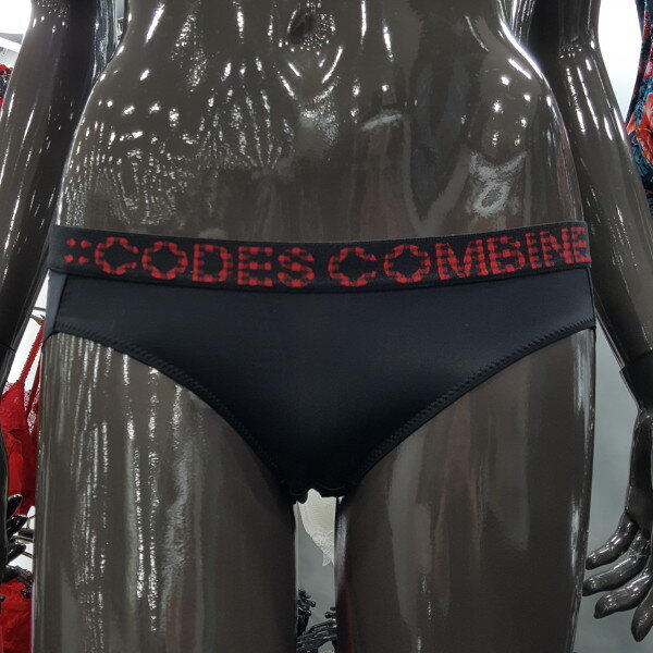 블랙 색상에 브랜드 로고 아웃밴드로 디자인된 코데즈 컴바인 여성 햄팬티 입니다. 편안한 착용감을 주는 제품입니다.