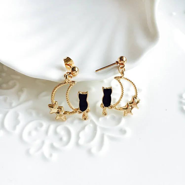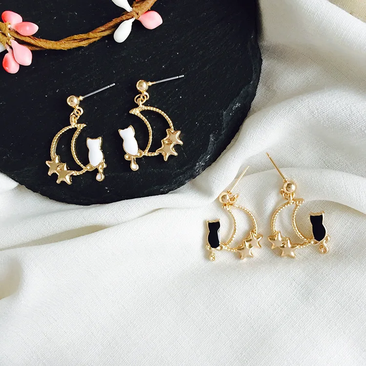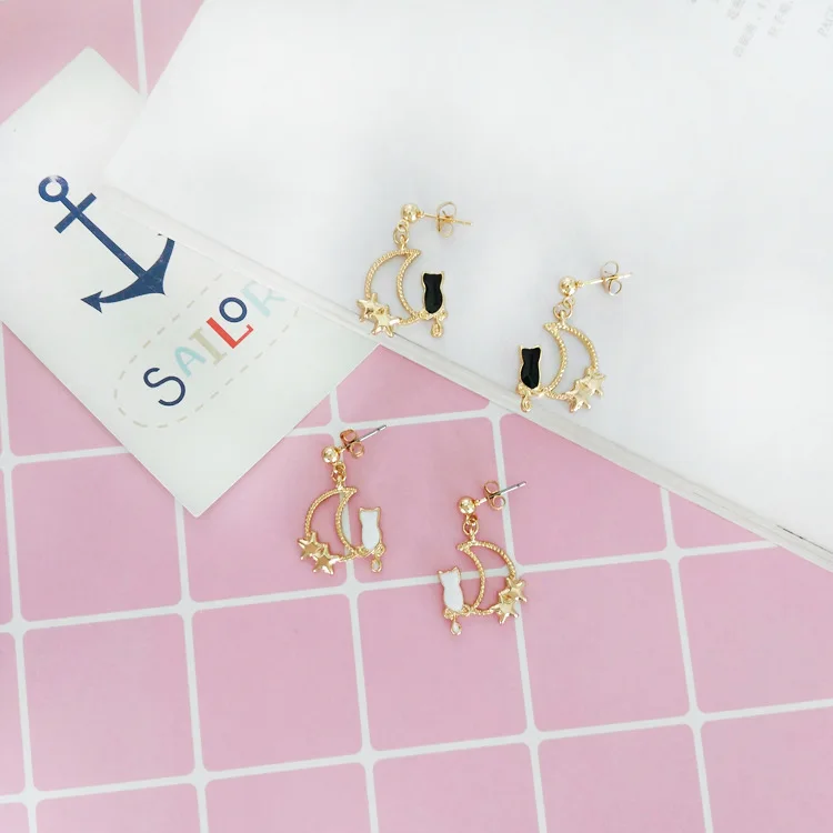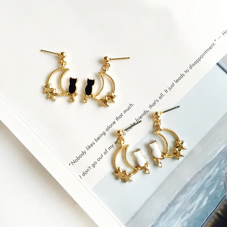 Pedant shape:Animal Black White Cat earrings