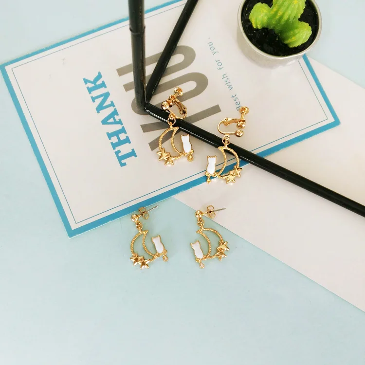 Usage:Animal Cat Non Piercing Earrings for Girl Women Wedding Bridal Bijoux