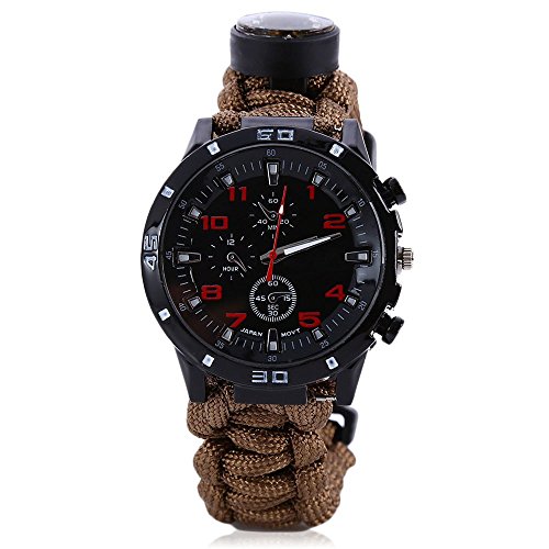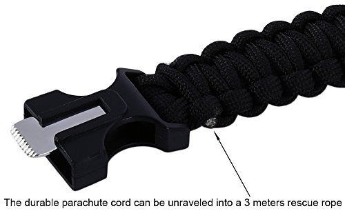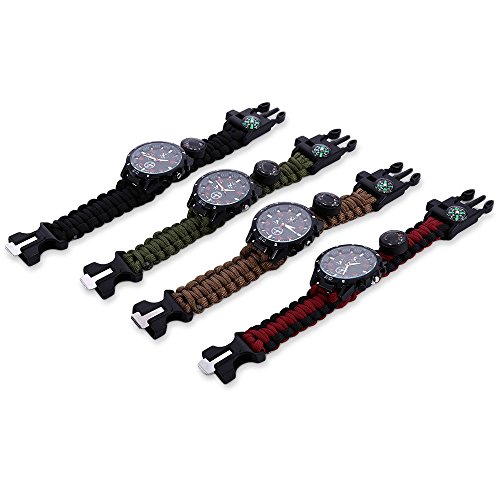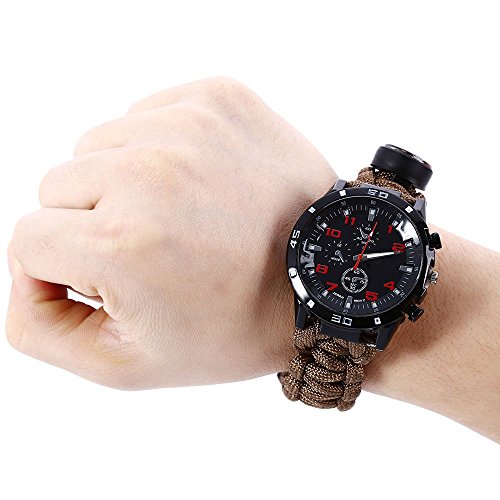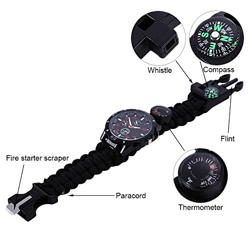 - ♥ 6 in 1 survival tool: Bracelet Watch + Compass + Whistle + Thermometer + Fire Starter Scraper + Paracord