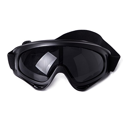 -. Feature : Shatter- and scratch-resistant polycarbonate lens; Black frames with tinted lens / Comfortable fit with foam protection around frame / Fog resistant and offers UV protection / Large frame allows clear peripheral vision / Adjustable elastic strap