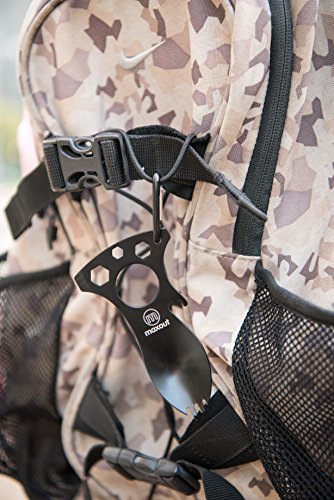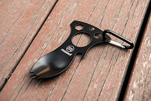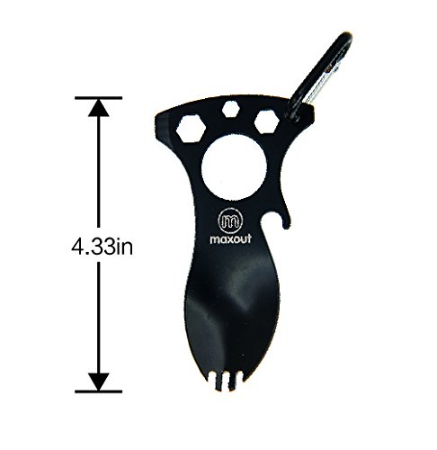 - MAXOUT MULTITOOL : Multiple tools in one - spoon, fork, bottle opener, wrench, flathead screwdriver and carabiner