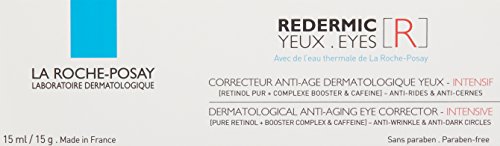 -. Binding : Health and Beauty -. Brand : La Roche-Posay -. Color : No Color -. Department : womens -. EAN : 0885738437836 -. Feature : Visibly reduces crow's feet wrinkles and Visibly reduces the appearance of dark circles. / The gold standard in treating wrinkles, pure retinol is a vitamin A / This exclusive complex boosts the action of 0.01% pure retinol to help increase its efficacy / Caffeine: This ingredient is known to help visibly reduce dark circles. / The weightless texture of Redermic [R] Eyes absorbs quickly and effortlessly, leaving the delicate skin around the eyes refreshed, smoother and more youthful looking. -. IsAdultProduct : 0 -. Label : La Roche Posay -. Manufacturer : La Roche Posay -. Model : M63391 -. MPN : M63391 -. NumberOfItems : 1 -. PackageQuantity : 1 -. PartNumber : M63391 -. ProductGroup : Prestige Beauty -. ProductTypeName : LUXURY_BEAUTY -. PublicationDate : 2013-08-28 -. Publisher : La Roche Posay -. ReleaseDate : 2013-08-22 -. Size : 15ml/0.5oz -. Studio : La Roche Posay -. Title : La Roche-Posay Redermic Eyes Cream, 0.5 Fluid Ounce -. UPC : 885308912244