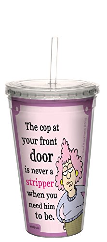 Tree-Free Greetings 16-Ounce Double-Walled Cool Cup with Reusable Straw, Aunty Acid Stripper Cop (CC98517)