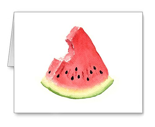 -. Feature : "Watermelon Slice" artwork by watercolor artist DJ Rogers. / Note card size is 4.25 x 5.5 inches / Matching white envelopes included. / Note cards are blank inside for your personal message. / Suitable for framing.