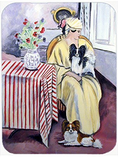 Caroline's Treasures 7069LCB Lady with Her Papillon Glass Cutting Board, Large, Multicolor