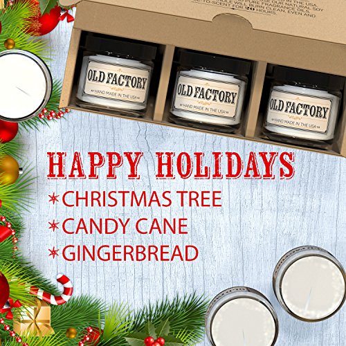 - Title : Scented, Natural Soy Wax Candles. Burns Clean, Even, and True-To-Scent for Hours. Perfect as a gift, or for your own home. Hand-poured in the USA. "HAPPY HOLIDAYS" themed gift set of 3 different 2 ounce candles. Includes Christmas Tree, Candy Cane, Gingerbread.