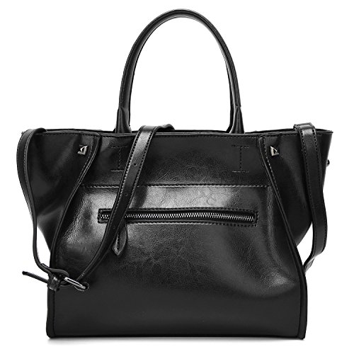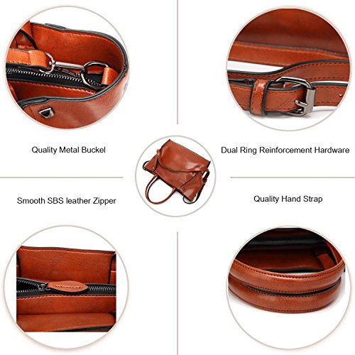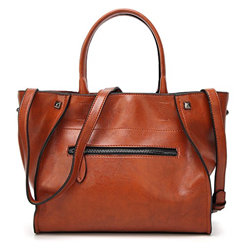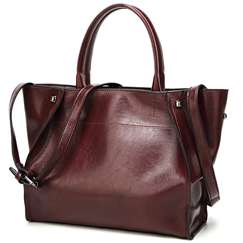 -. Feature : [HIGH QUALITY MATERIAL] Luxurious leather, durable fabric lining. Come with light gold custom antioxygenic hardware, these make the leather handbags more luxury. The lining is durable and smooth. Generous and elegant. / [CLOSURE] Top Zipper closure for your security. / [INTERNAL STRUCTURE] This handbag contains a main section compartments, 2 inner zipper pocket, 2 Small Open Pocket for Your Phone or Key, 1 back zip pockets. Large capacity designed, this leather handbags comfortably holds an iPad, iPhone6s Plus, wallet, cosmetic, and other daily things, perfect to use as daily handbags for working, shopping, working or dating. / [DIMENSIONS]: (L)11.8" x (W)4.7" x (H)9.8" inch, with approximately 5.9 inch handle / [DELICATE AND PRACTIAL DESIGN] Hand made by professional artisans. The leather purse appearance concise and atmosphere, powerful at the same time. Fully lined interior includes inside pocket, detail stitching matches the bag color. We have 5 colors, all kind of colors are beautiful and stylish, you can choose any color you like.