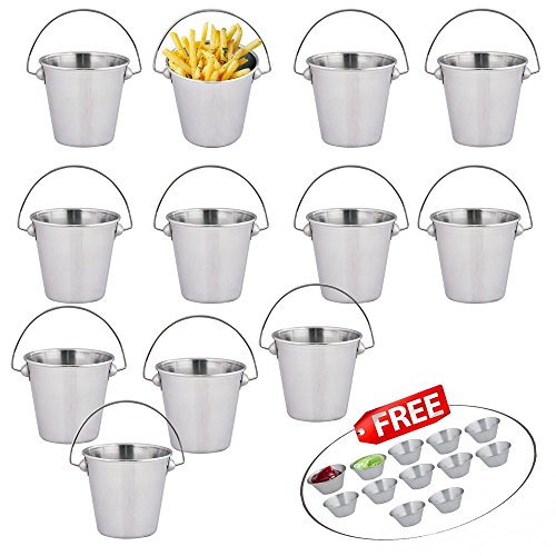 Studio : Montstar Publisher : Montstar Product Description These bucket are suitable for serving sides with meals or presenting sachets of condiments on restaurant tables in an exciting new way. Ideal for serving french fries, chips, rice, beans or coleslaw etc. The Set of 12Pc Fries Bucket comes with 12Pc Sauce Cups of 1.5 oz as FREE Gift. 0